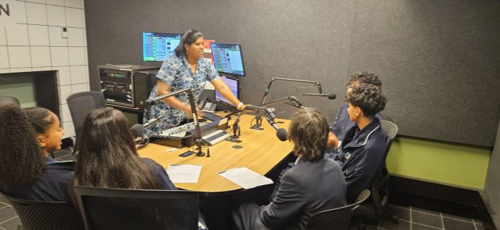 They heard about the rules and regulations covering broadcasting, including content appropriate for public broadcasting. Students also experienced the excitement of being live on air in a real radio studio.