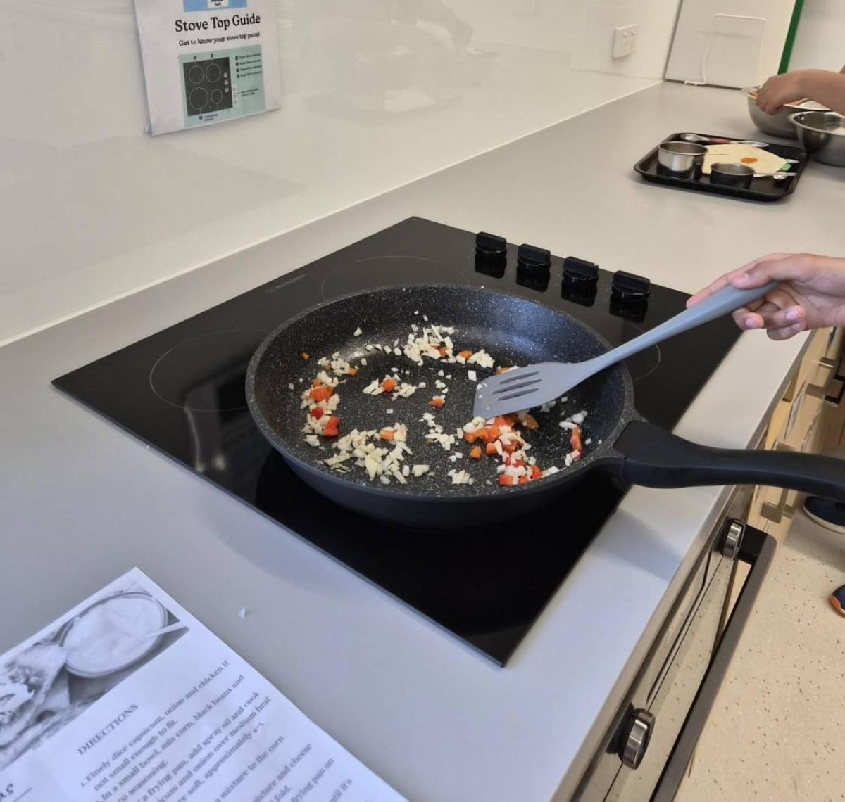 Our Cobblebank Campus students have been busy in the brand-new kitchens of our Creativity Hub, learning how to safely and confidently use the stovetop while cooking up delicious Quesadillas.