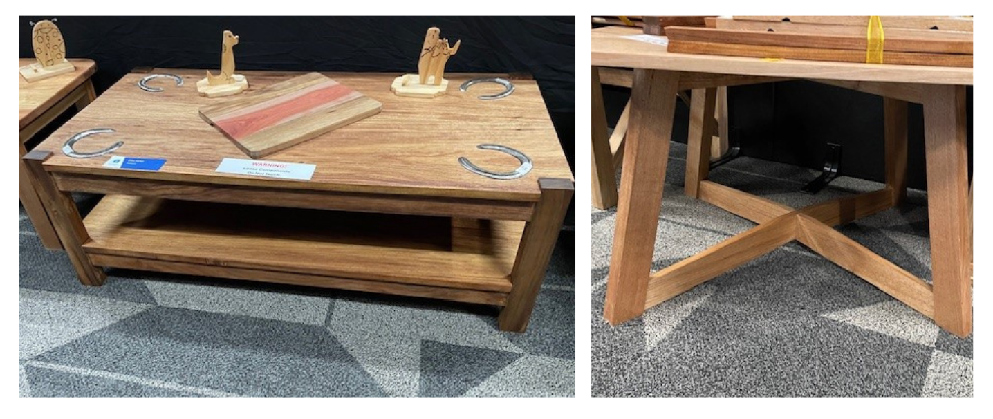 Pictured above from left: occasional table by Year 10 student Ollie; Victorian Ash occasional table by Year 11 student Samuel.