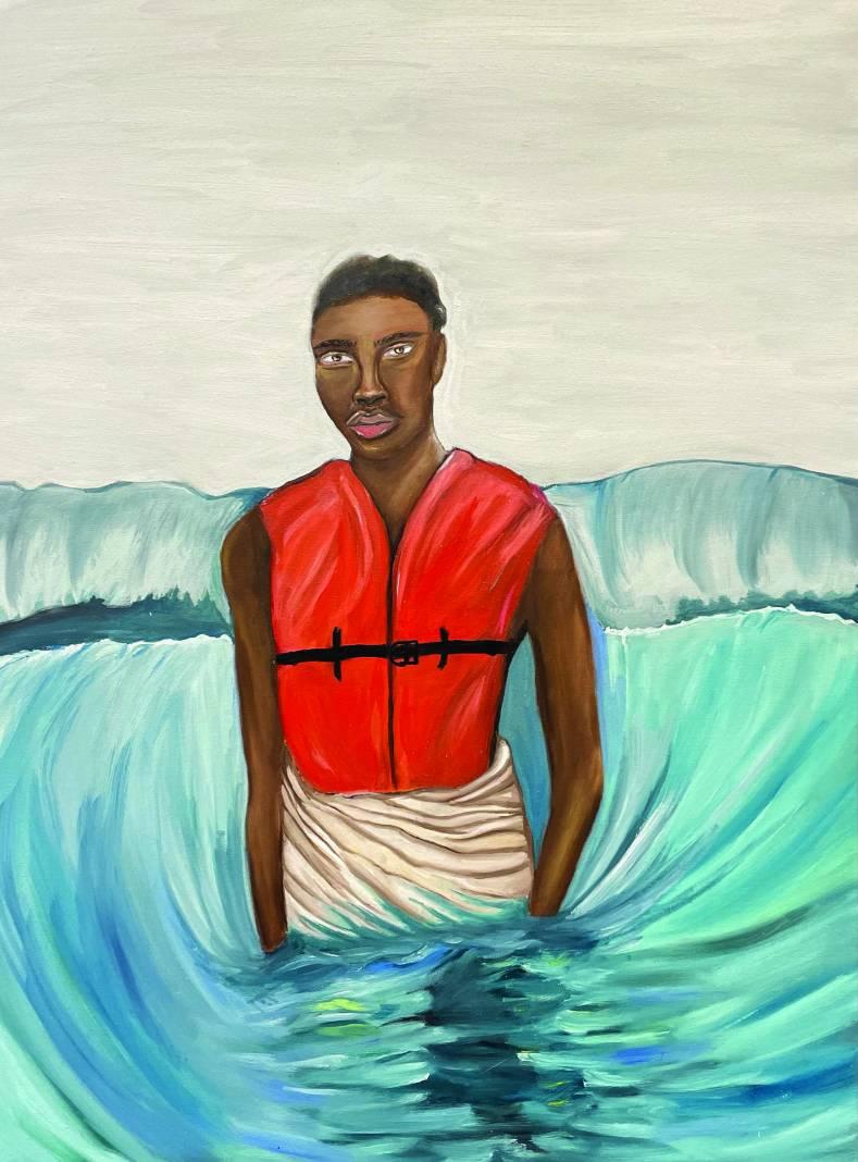 Hundreds of children, women and men fleeing prosecution, civil war or famine cross the sea. Many of them do not reach the promised land, free of violence and corruption. A country or province with opportunities and safety. A country that represents a future without anguish, despair, and hopelessness. This artwork encapsulates the perilous nature of the sea and the hope and courage of refugees, despite their circumstances.