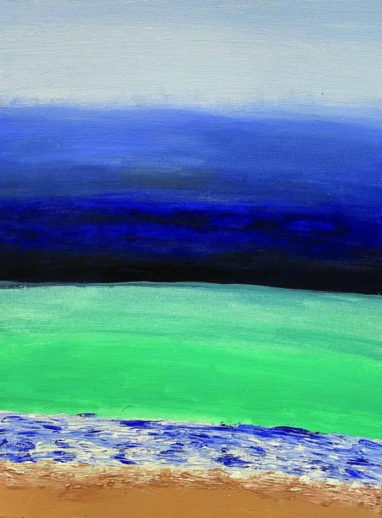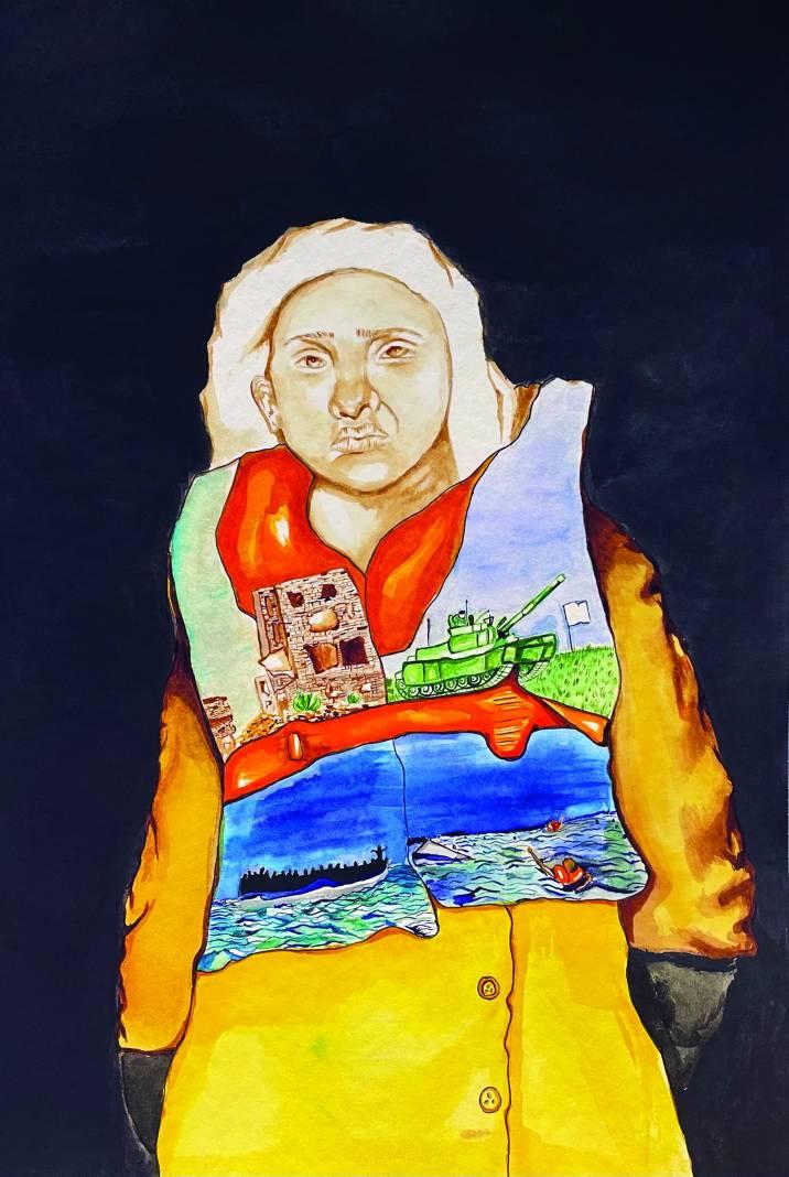 Many refugees and asylum seekers resort to crossing the sea, that is extremely unpredictable and dangerous. My artwork entitled displacement aims to highlight the why refugees and asylum seekers flee, the immense danger of the sea and the great number of people who die in the sea.