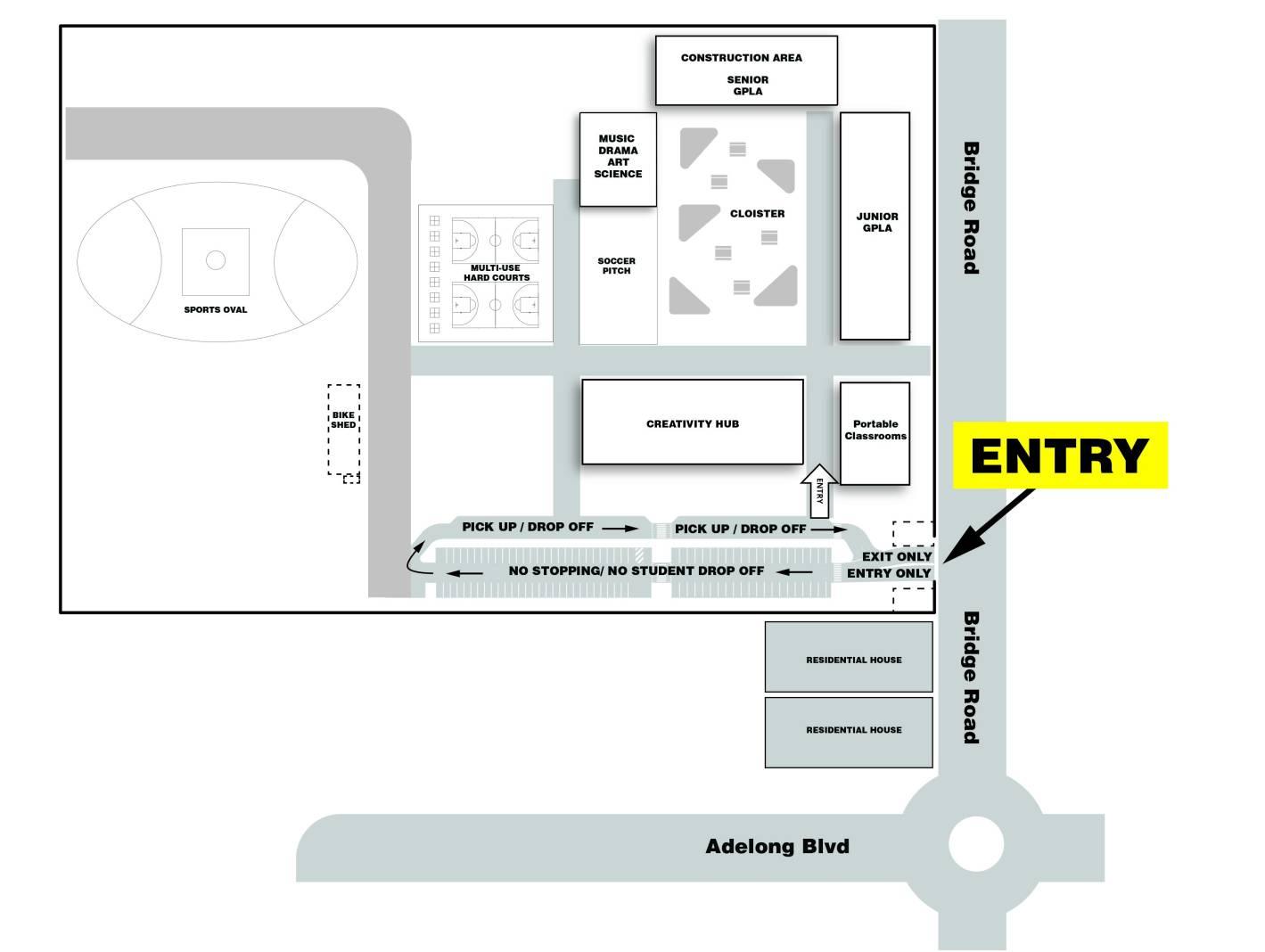 Parents and guardians can enter the school grounds from Bridge Road before and after school to access the designated pick-up and drop-off zone.