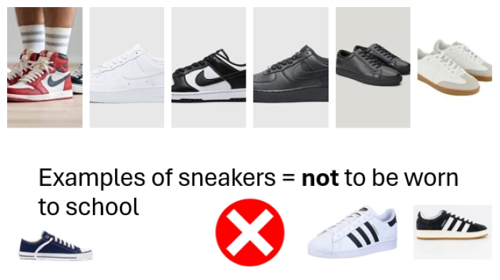 As outlined in the SFCC Uniform Policy, sneakers of any kind are not permitted.