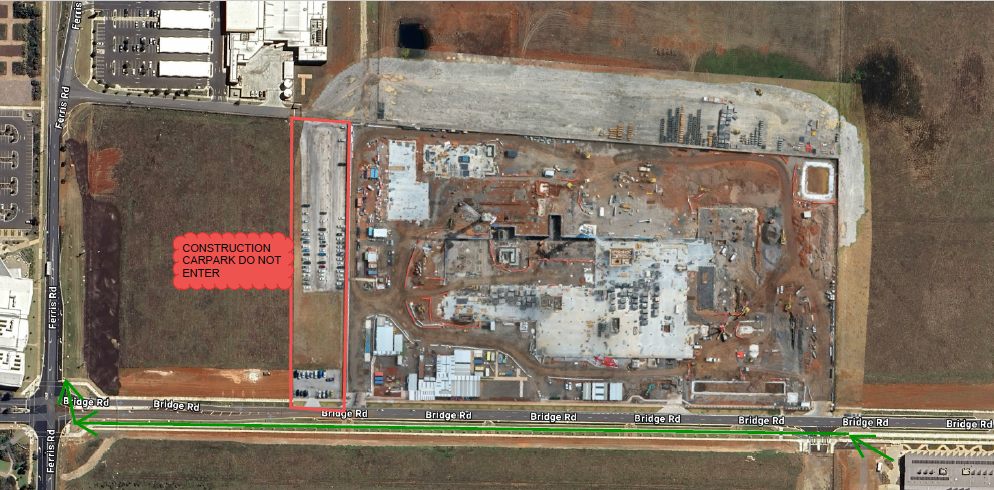 For safety reasons, students must use the south side footpath of Bridge Road (the side away from the construction site) and access via Ferris Road.