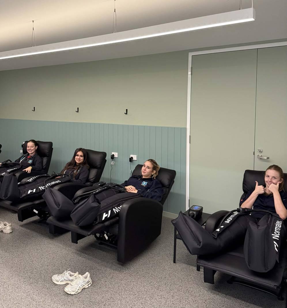 Following lunch, we moved into a practical session on recovery strategies, using the infrared sauna, cold plunge baths, and inflatable compression boots.