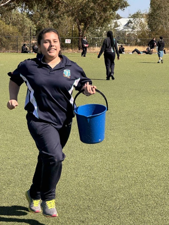 To finish Harmony Week, students and staff represented their House in the Ks for Caritas event, carrying a 5kg bag of rice or a 10-litre bucket of water across the oval.