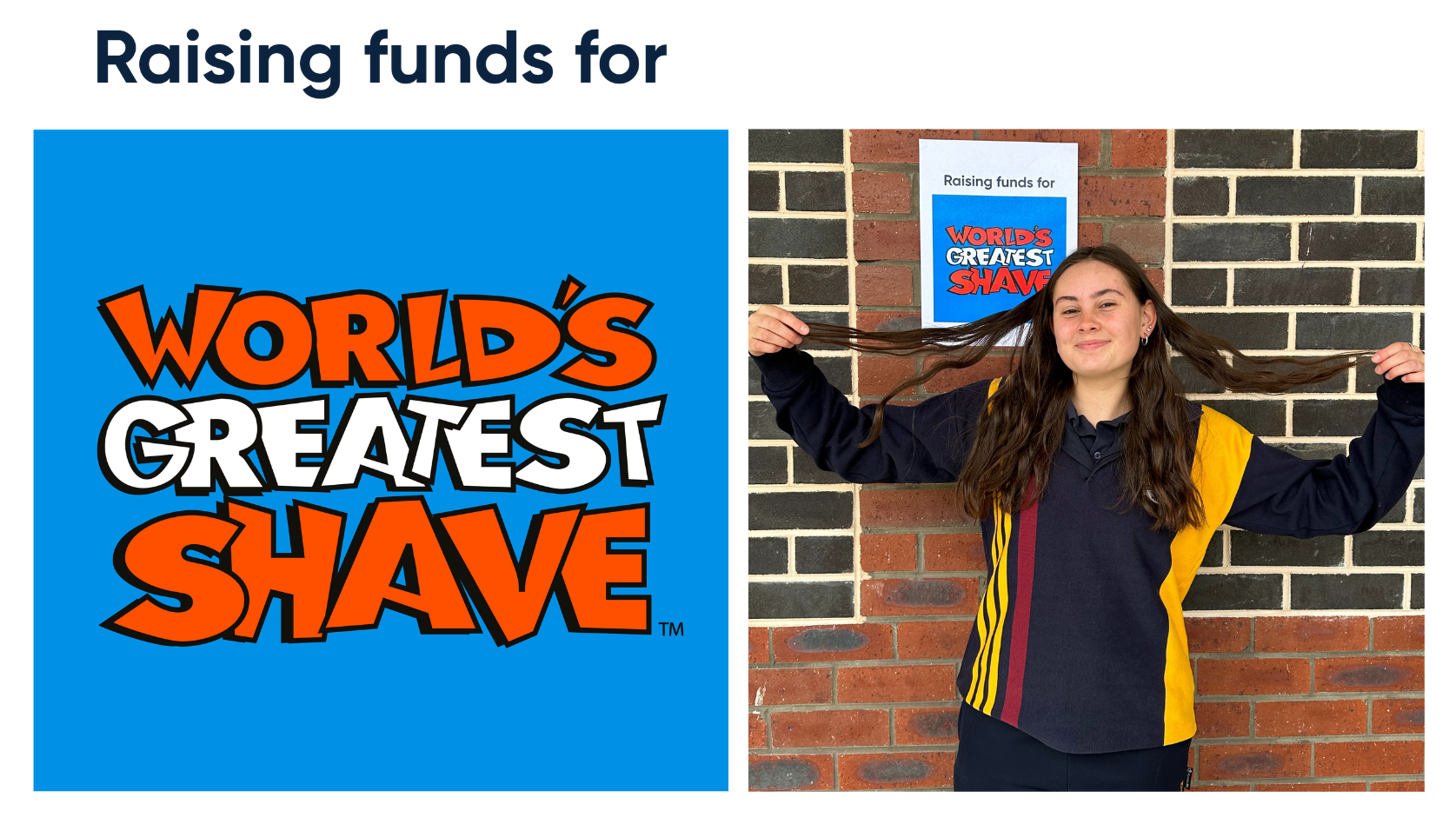Camryn’s long locks will be cropped tomorrow at lunchtime when she shaves her head as part of the World's Greatest Shave campaign to raise funds for the Leukemia Foundation.