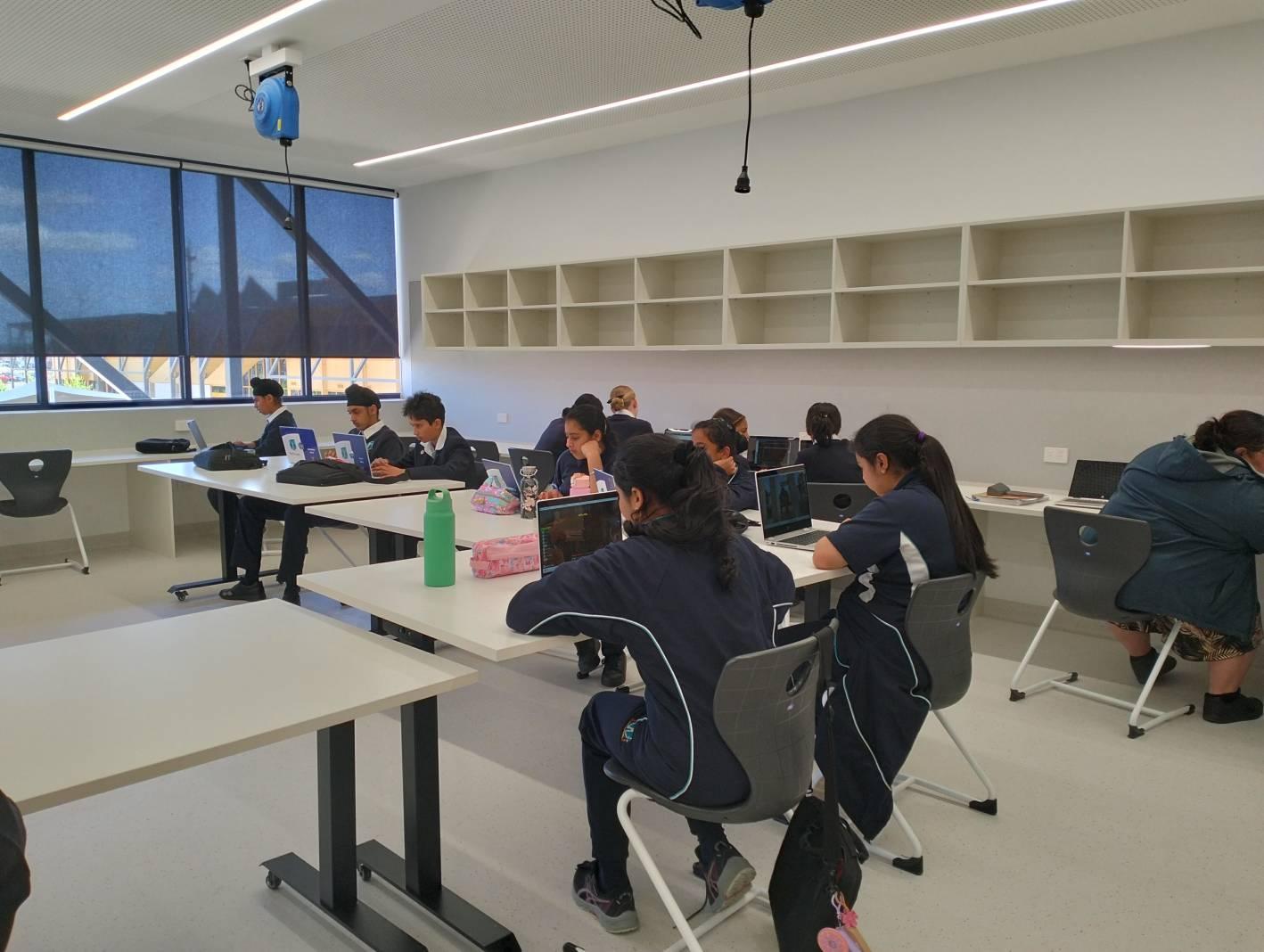 The Hub brings together a range of specialist learning areas, including Food Technology, Hospitality Kitchen, Wood and Metal Workshops, Art, Visual Communication, Media, Digital Technology, Robotics, Textiles, and Project-Based Learning spaces.